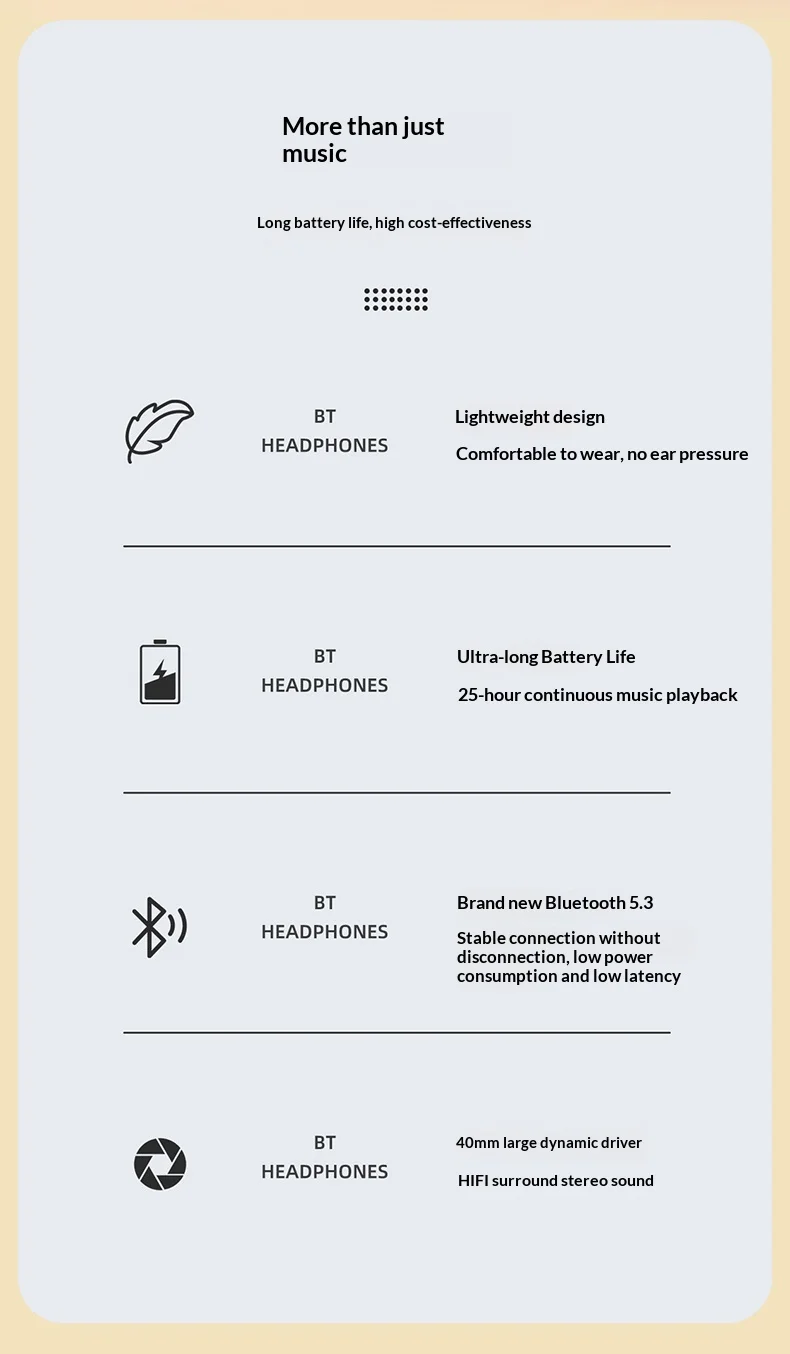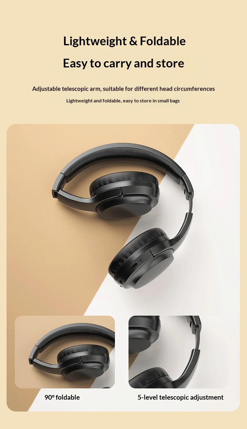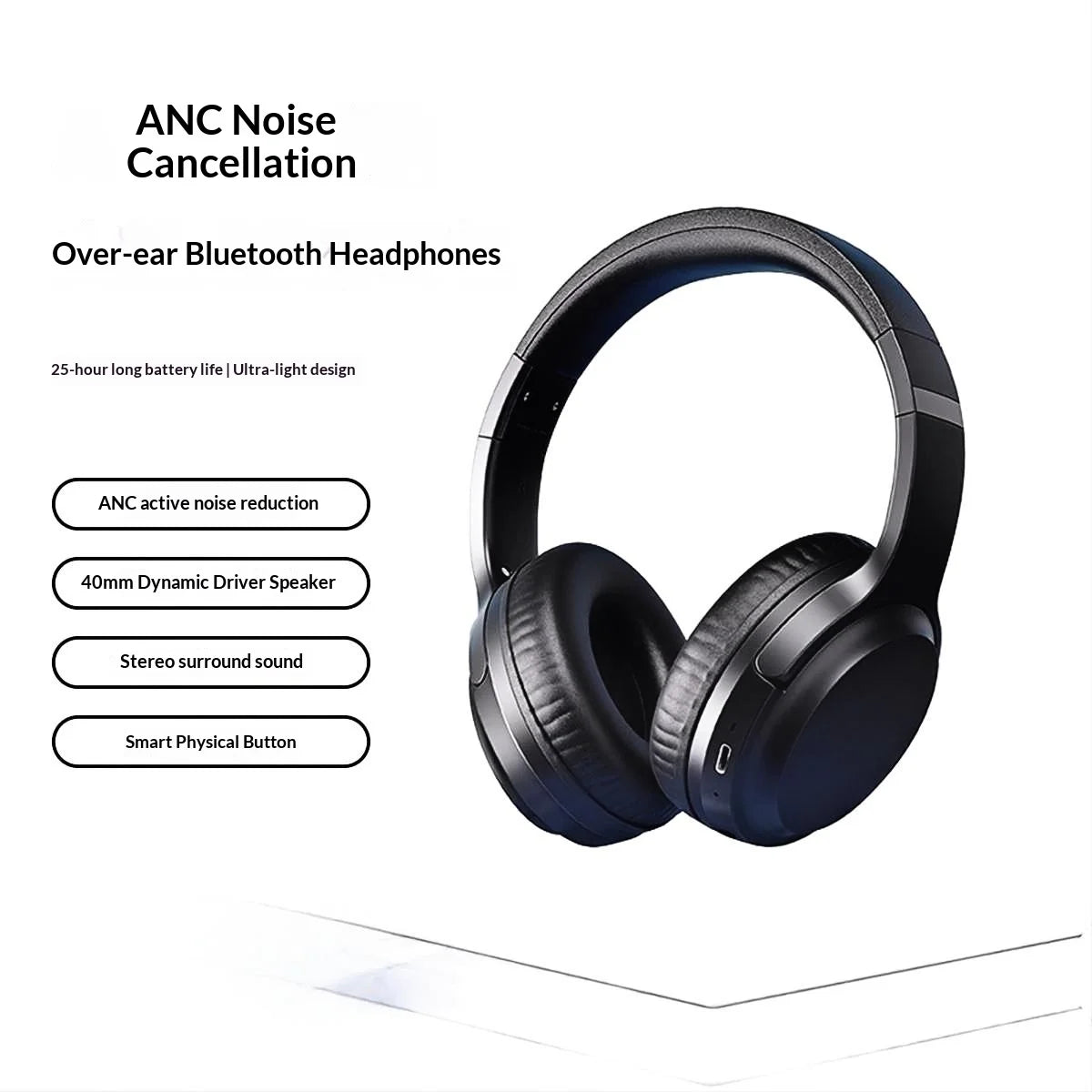 Bluetooth 5.3 Headphones with ANC, 25H Playtime, 40MM Driver, Hi-Fi Stereo, Foldable Over-Ear Wireless Headset