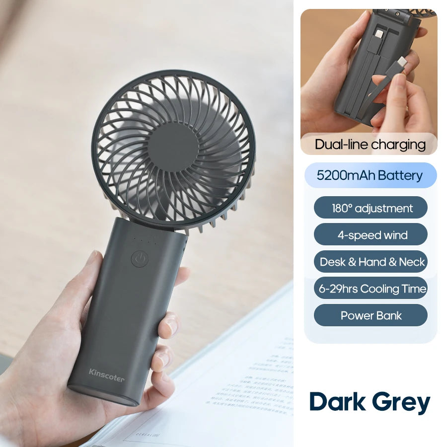 *Multifunctional Integration:Not just a handheld fan, it comes with a 5200mAh dual - wire charging bank, providing power - bank functionality to charge your devices on the go.
