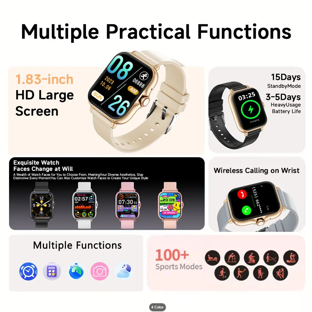 Smart Watch 1.83-inch IPS Screen Bluetooth Calling Multiple Sport Modes For Android&IOS Men Women Smartwatch Gifts New